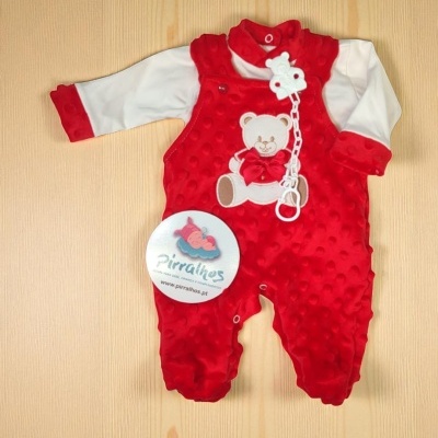 Conjunto de três  peças de veludo (80% algodão, 20% poliester) , inclui a jardineira ajustável em altura , camisola de manga comprida , prende chucha  , modelo de confecção nacional